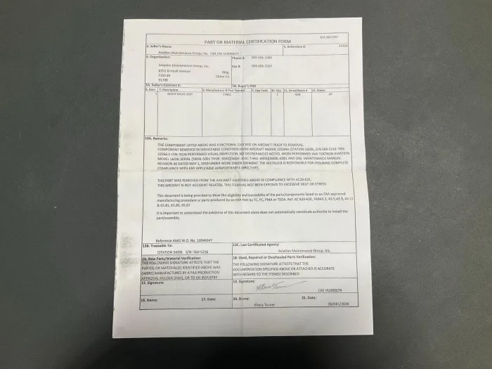 This item is sold as-is, exactly as described. The buyer is responsible for confirming applicability, fitment, airworthiness, and eligibility for the intended installation in accordance with the applicable aircraft maintenance manual and regulatory authority requirements prior to purchase or installation.