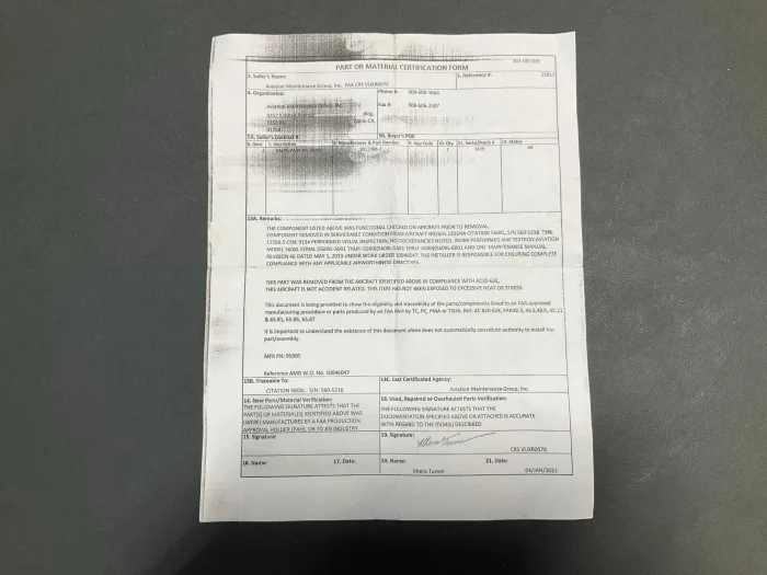 - Documentation: ATA 106 Form included